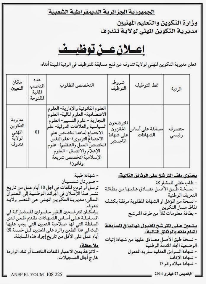 اعلان توظيف ليوم 27 فيفري 2014........بالتوفيق للجميع